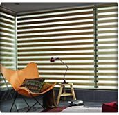 La doble tela con bandas horizontales que se sobreponen entre sí logra un excelente control lumínico y de privacidad, todo a través de un suave movimiento.